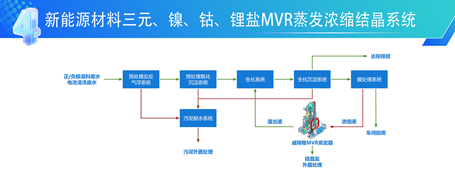 易胜博针对新能源锂电行业实际产生的废水水质情况,通过不断的改良优化,为满足不同客户的需求,推出了以MVR/多效蒸发器系列产品为核心的锂电行业新一代废水处理工艺,轻松实现中水回用达到标准排污要求。