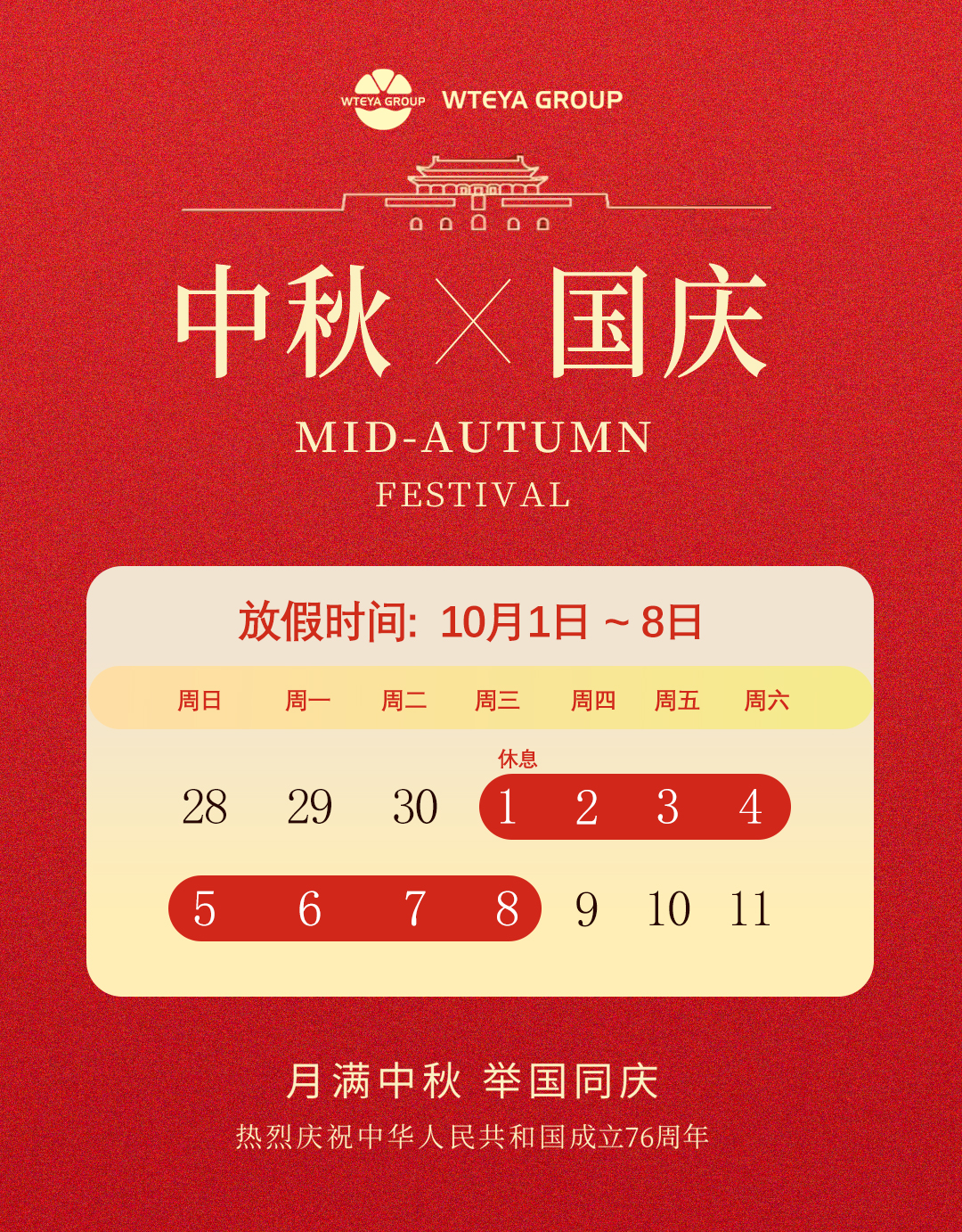根据国家法定节假日安排,结合易胜博公司实际情况, 易胜博集团2025年国庆节假期安排如下: